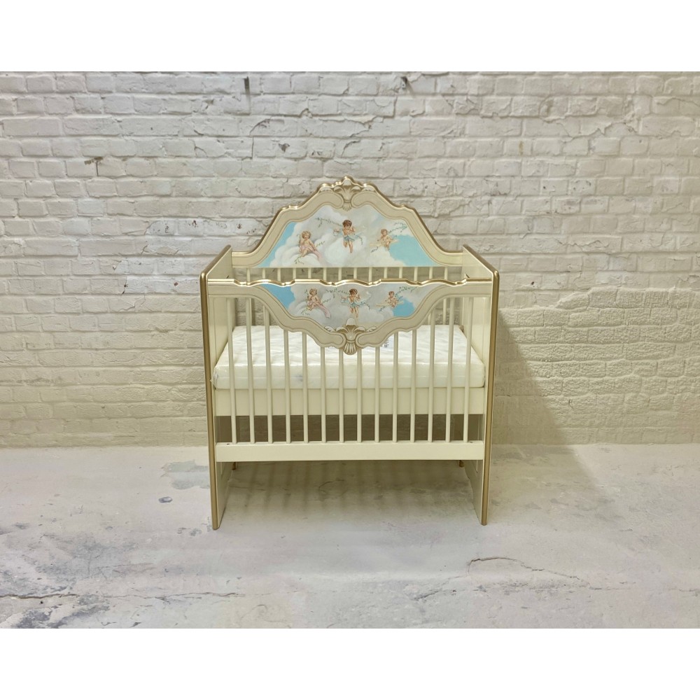 Look at this totally amazing hand painted Cherub cot. The artwork has been created by our artist using a paint brush with one eyelash on it!